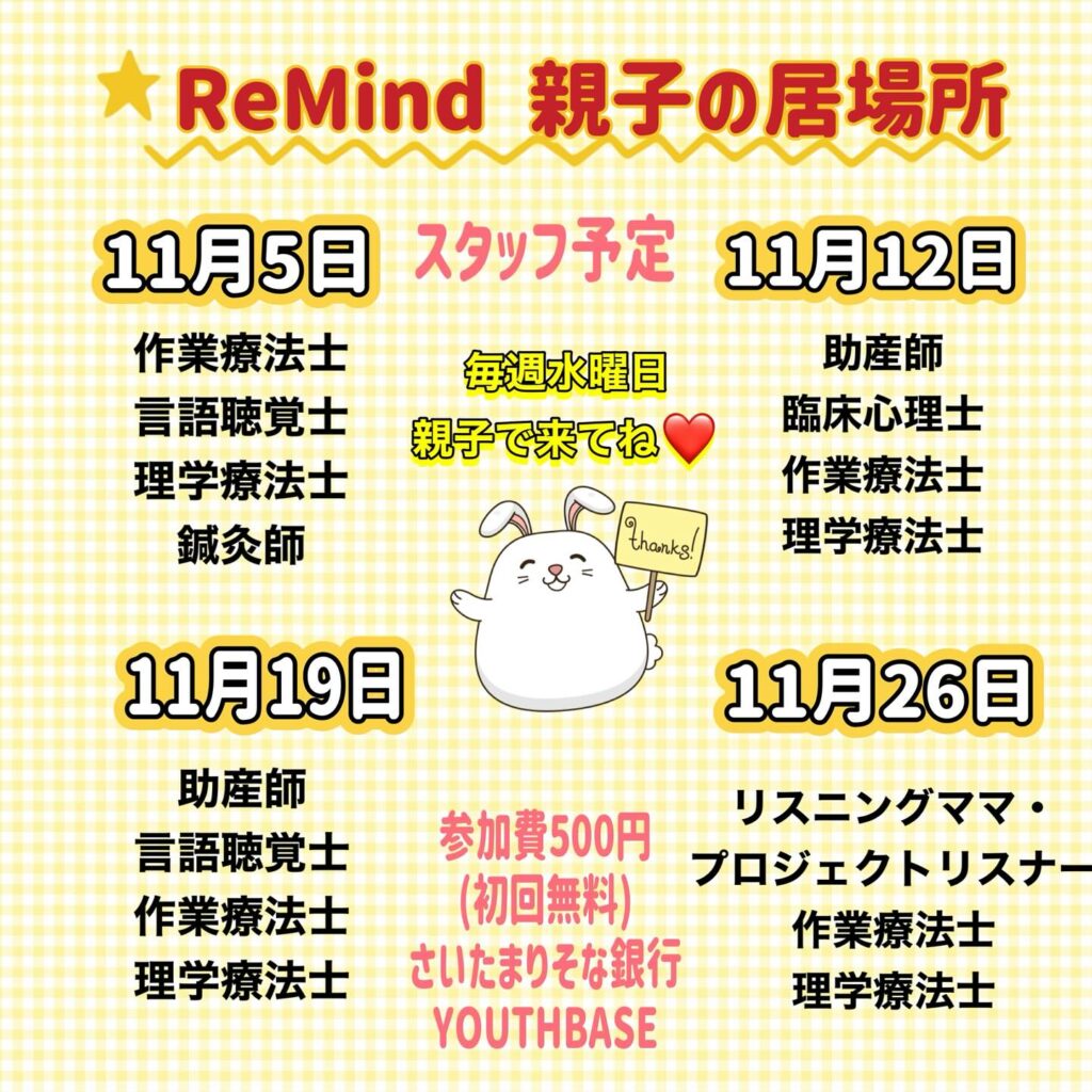11月のスタッフ予定を共有させていただきます![]()